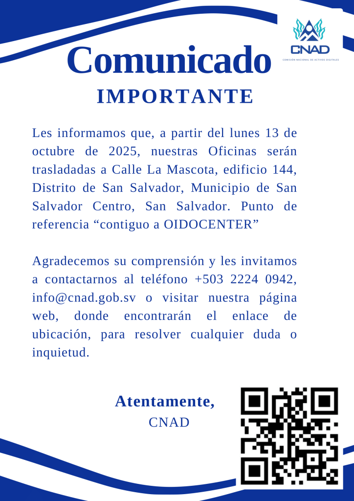 Important Announcement: Important Announcement: Relocation of Offices of the National Commission on Digital Assets. October 10, 2025